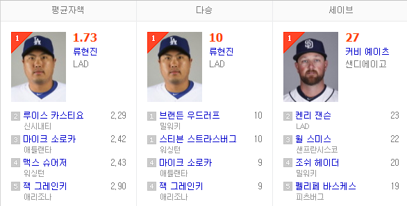 현재 류현진 선수는 평균 자책점과 다승에서 1위를 달리고 있다. 쭈욱 유지해서 사이영상 한번 타보자! 대한민국 야구의 역사를 볼 수 있는 기회였으면 좋겠다! 국뽕이지만 요즘 정말 국위선양 제대로다. 멘탈만 안털렸으면 좋겠다.