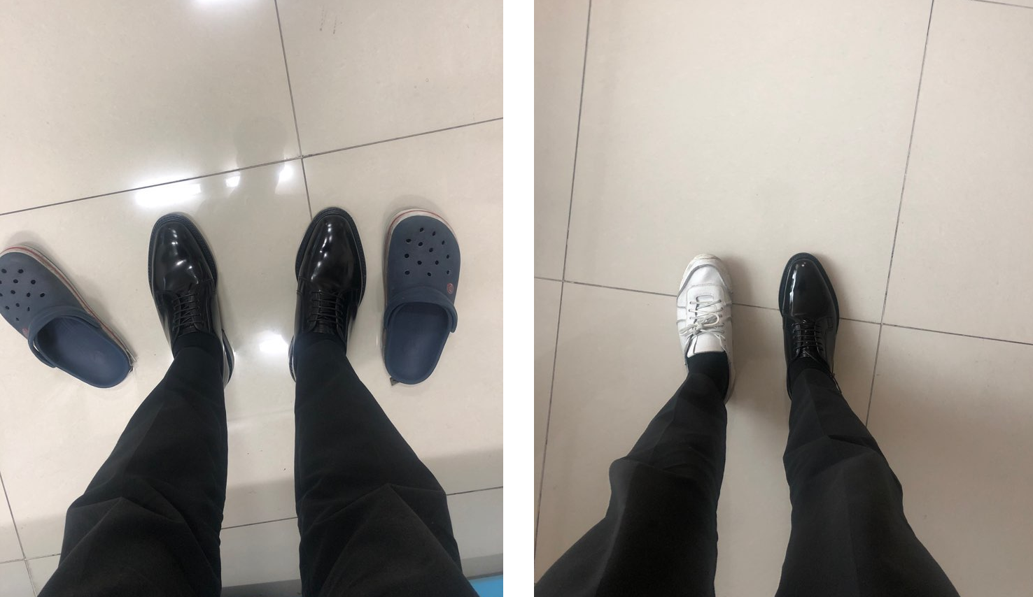밑에 사진은 더비를 신었을 때와 부테로카레라와 한 짝씩 신고 찍어봤다.