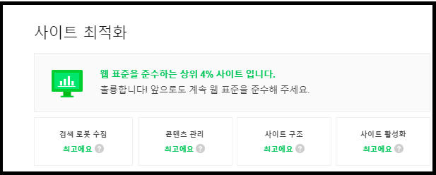 현재 나는 네이버 웹마스터 도구 최적화 상위 4%에 해당하는 블로그를 운영 중이다. 그만큼 오랜 기간 운영하기도 했고 네이버 웹마스터 도구 최적화에 관심이 있었기에 달성할 수 있었다.