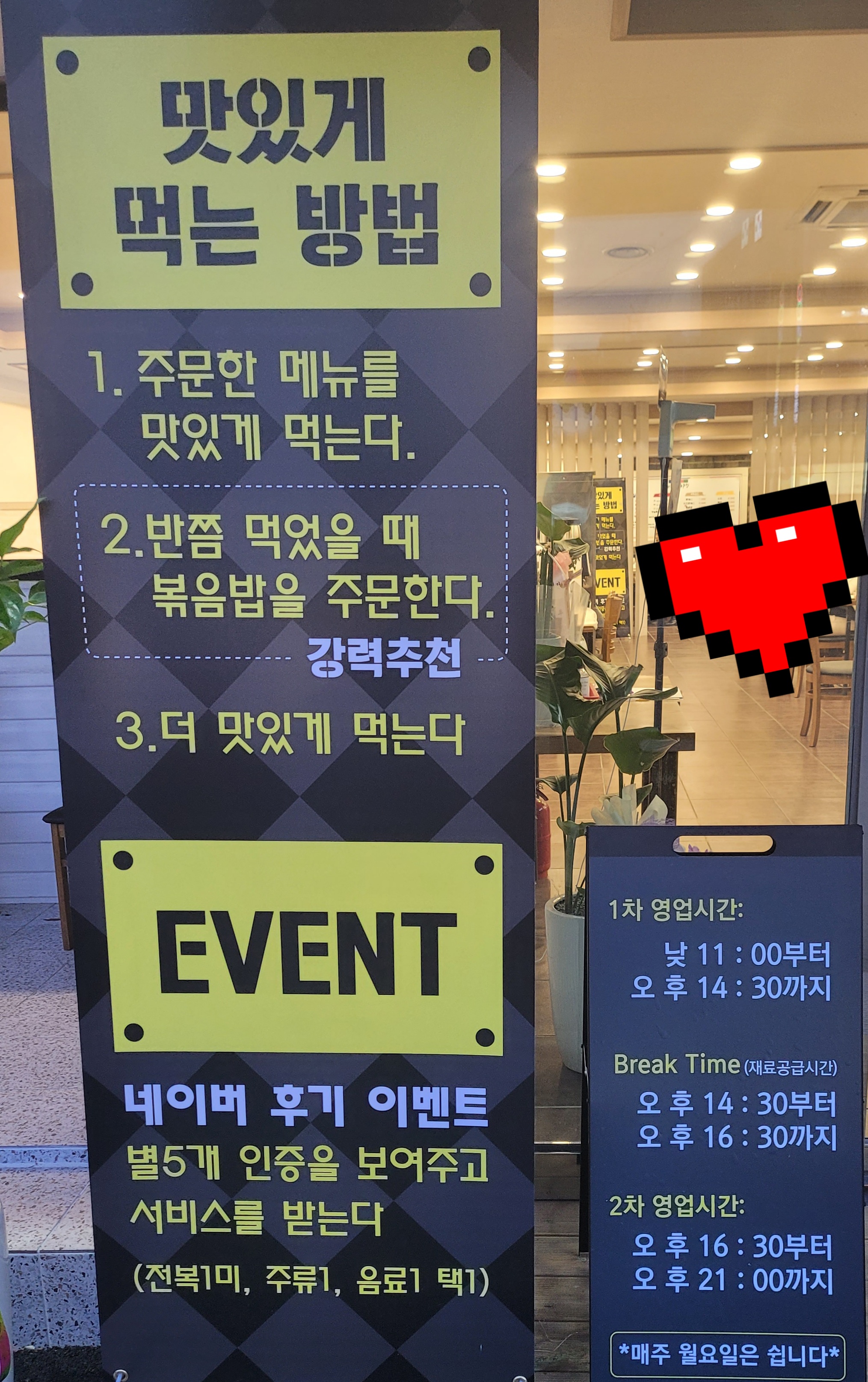 아쉬운 점은 오픈 기념이 매장 한정으로 볶음밥을 주는 이벤트다. 코로나로 매장 내 식사를 꺼려하는 분들이 많음에도 매장 한정이라 아쉽다. 하지만 진천 대곡 수목원근처에서는 꽤나 맛있게 먹을 수 있다.