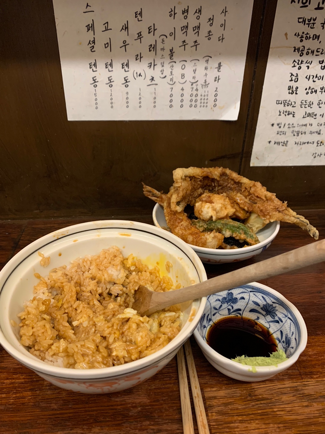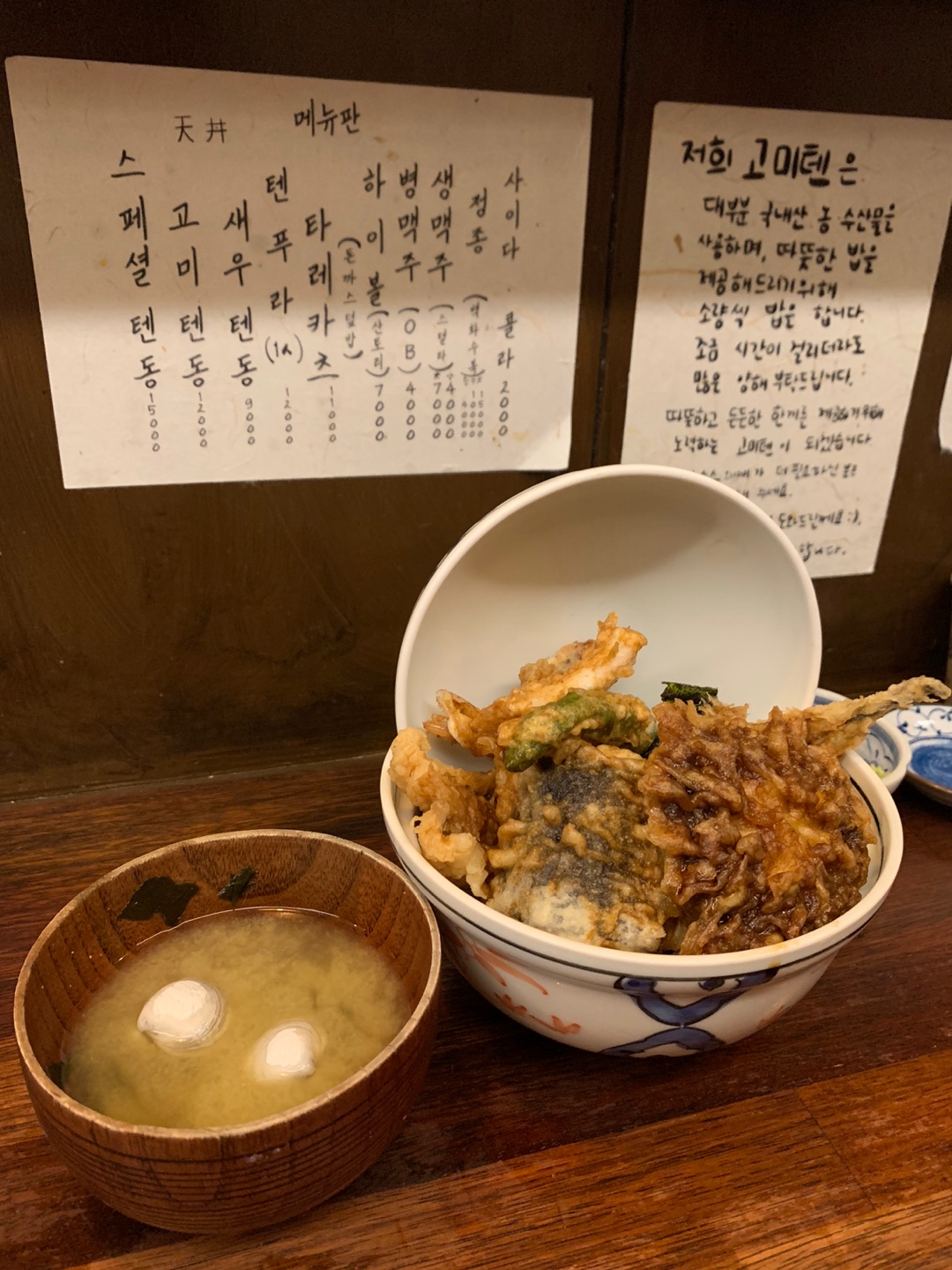 처음 접해보는 눅진함때문에 아 이런방식의 텐동도 있구나? 경험해보는 것도 나쁘지 않고 단골이 많아 보였다. 아마 이 눅진함을 좋아하는 사람들이 아닐까 싶다.